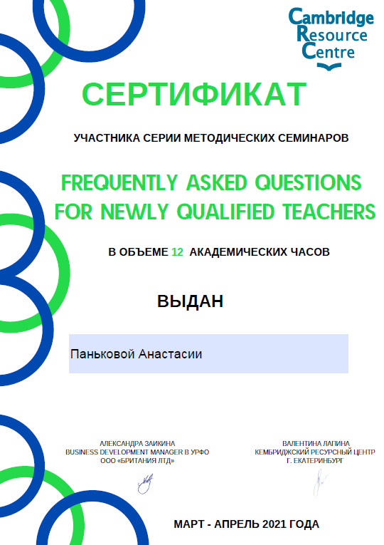 Меня зовут Анастасия, я дипломированный преподаватель английского языка, специалист по работе со взрослыми, с начинающим и средним уровнем